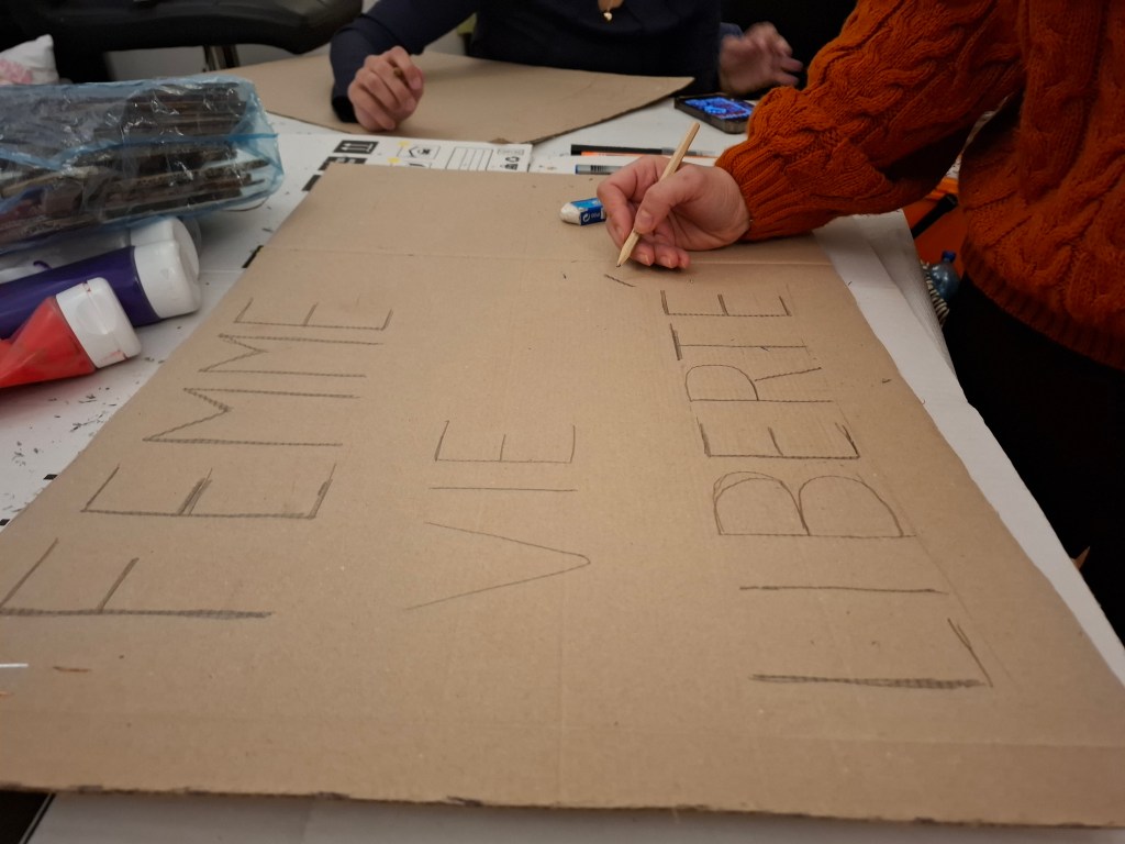entrecoupés de performances symboliques représentant notre soutien à la lutte des femmes au Kurdistan, en Iran, au Pérou, en Palestine et au Congo, en Ukraine, etc.